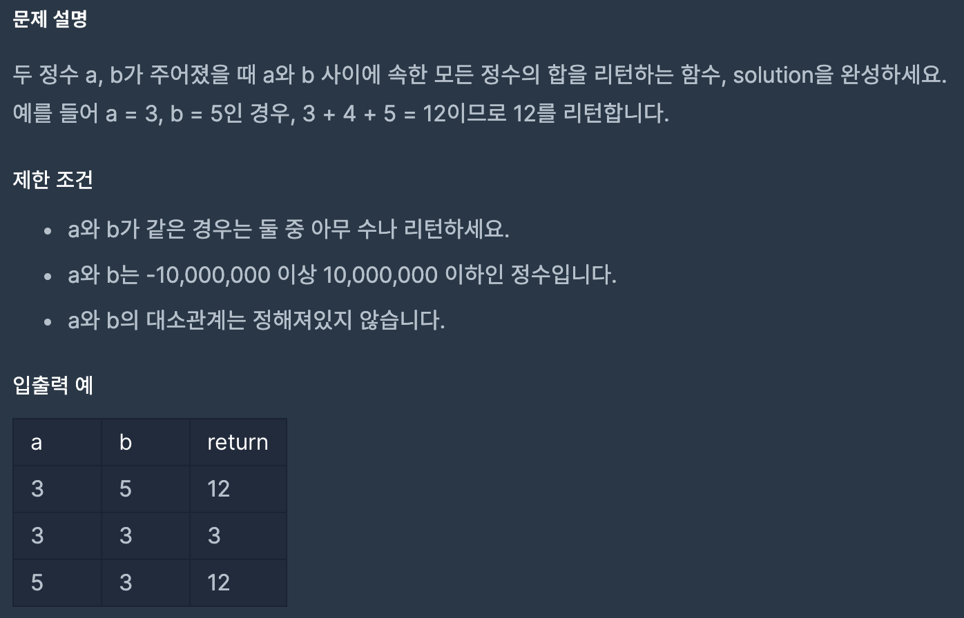 [ํ๋ก๊ทธ๋๋จธ์ค] ๋ ์ ์ ์ฌ์ด์ ํฉ ๋ณธ๋ฌธ