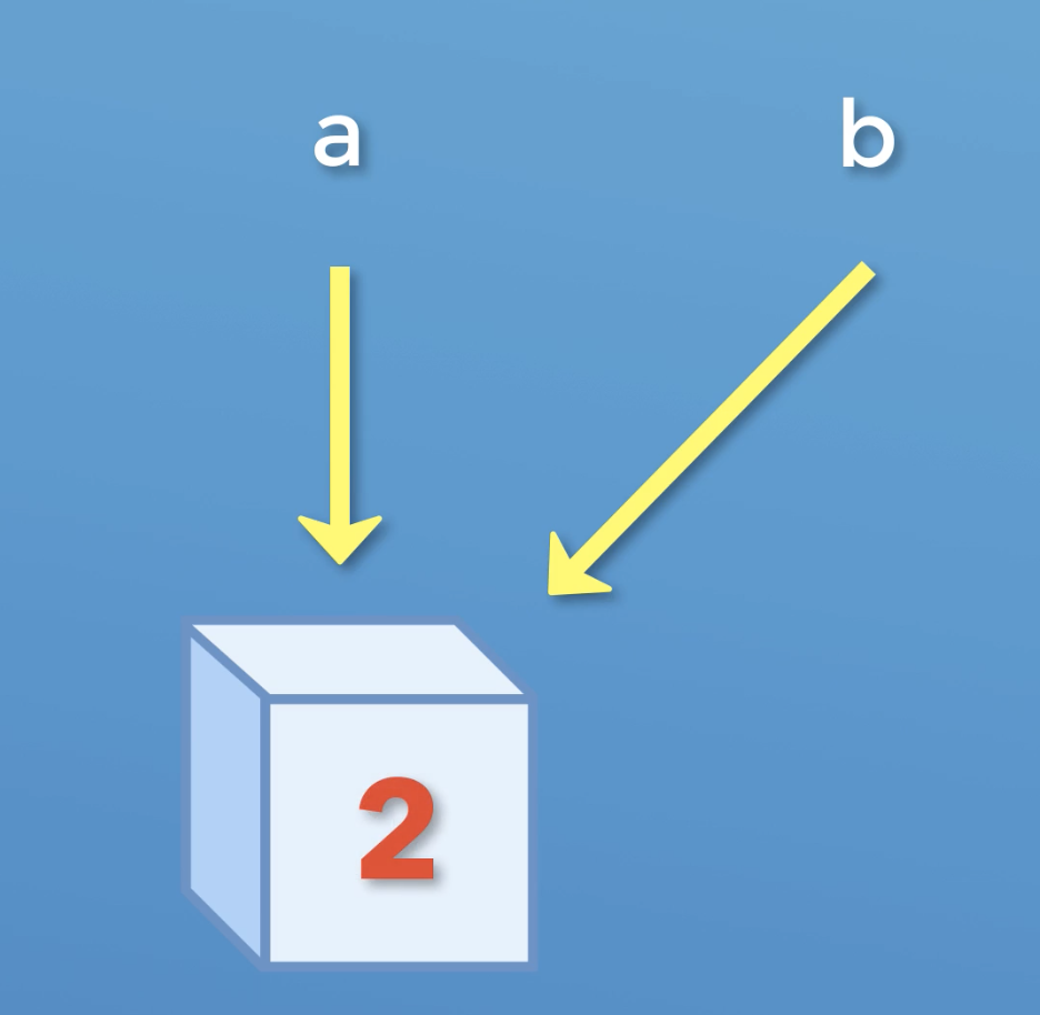 2๋ฒ์ํฉ์ด ๋๋ฉด, class๋๊น Reference ํ์ ์ผ๋ก b๋ ๋์ผํ๊ฒ a๊ฐ ์ฐธ์กฐํ๋ Object๋ฅผ ์ฐธ์กฐํ๊ฒ ๋๋ฉด์, ์์ฐ์ค๋ฝ๊ฒ Object์ Count๋ 2๋ก ์ฆ๊ฐํฉ๋๋ค.. a,b ๋ ๋ค ์ด Object๋ฅผ ์ฐธ์กฐํ๋๊น์!