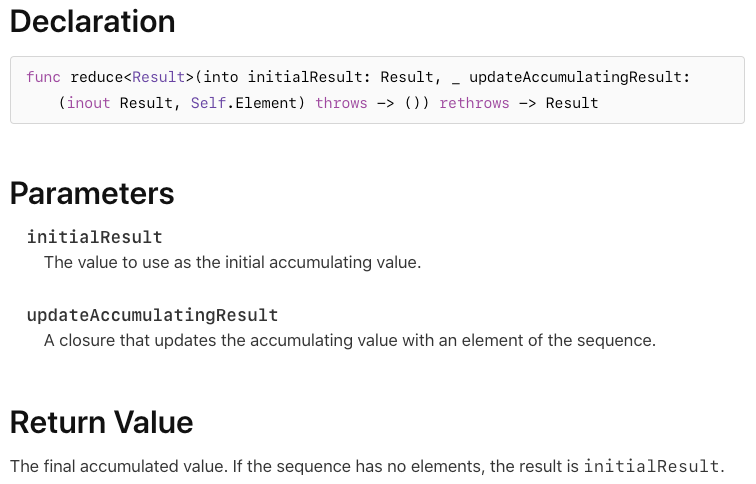 Apple Developer Document์์ map, filter, reduce์ ๋ํ ์ ์๋ฅผ ๋ฐ์ทํด์ค๊ธด ํ์ง๋ง.. ์๋ฌด๋๋ ๋๋ ์์ด๋ ์ด๋ ต๋๋ผ. ๐ ๐