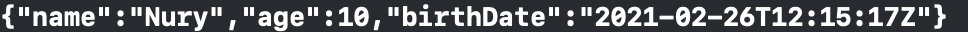 ์ค~~ ์ฐ๋ฆฌ๊ฐ ์ํ๋ json ํฌ๋งท์ผ๋ก ๋ณํ์ด ๋๋ค์!! ๊ทผ๋ฐ.. ์ birthDate์ 6360์ด์ฉ๊ตฌ ์ ์ฉ๊ตฌ๋ ๋ญ์ฃ ..!?
