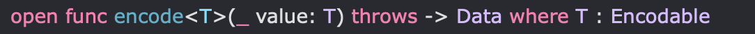 Encodable ํ๋กํ ์ฝ์ ์ค์ํ๋ T๋ผ๋ ์ด๋ค ๋ฐ์ดํฐํ์ ์ Dataํ์ ์ผ๋ก ๋ฆฌํดํด์ฃผ๋ ๋ฉ์๋๋ค์~!