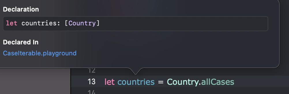 ์ด๋ ๊ฒ CaseIterable ํ๋กํ ์ฝ์ ์ฑํํ๋ฉด, ์ฐ๋ฆฌ๋ allCases๋ผ๋ ํ๋กํผํฐ๋ฅผ ํตํด ๋ชจ๋ ์ผ์ด์ค์ ๊ฐ์ ๊ฐ์ ธ์ฌ ์ ์์ด์!