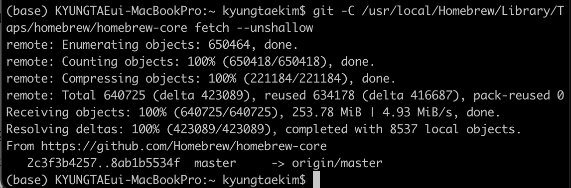 [BigSur] homebrew-core is a shallow clone ์๋ฌํด๊ฒฐ ๋ณธ๋ฌธ