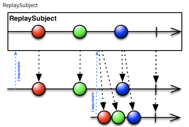 ๊ธฐ๋ณธ์ ์ธ ๋์์ PublishSubject์ ์ ์ฌํ๋ฐ, ์ค๊ฐ์ ๋ค๋ฅธ Observer๊ฐ ๊ตฌ๋ ํ๊ธฐ ์์ํ๋ฉด ์ง๊ธ๊น์ง ๋ฐ์ํ๋ ๋ชจ๋ ๋ฐ์ดํฐ๋ฅผ Buffer Size(๋ช๊ฐ๋ ๋ฐฐ์ถํด์ค๊ฑด์ง) ๋ฐฐ์ถํด์ฃผ๊ณ , ์ดํ๋ถํฐ๋ ๋ฐ์ดํฐ๊ฐ ๋ฐ์ํ ๋๋ง๋ค ๋ฐฐ์ถํด์ฃผ๋ ๋ฐฉ์์ผ๋ก ๋์ํฉ๋๋ค.