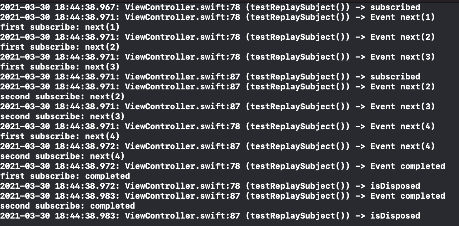 let replaySubject = ReplaySubject<Int>.create(bufferSize: 2)
